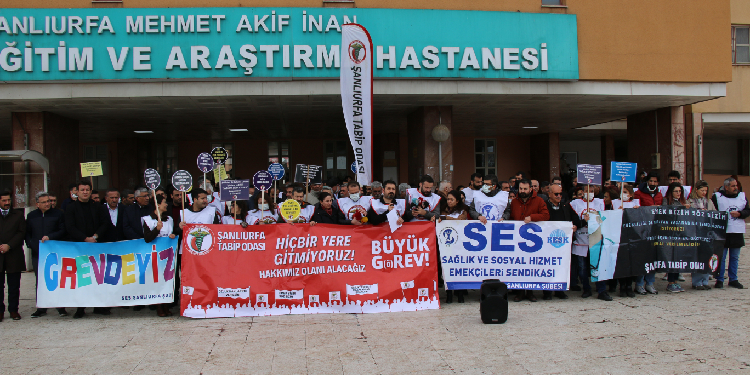 Türk Tabipler Birliği’nin (TTB) çağrısıyla 14 Mart Tıp Bayramı’nda doktorlar, özlük, ekonomik ve sosyal haklarının düzeltilmesi talebiyle 2 günlük iş bırakma eylemi yaptı. Urfa’da sağlık emekçilerinin yüzde 90’ı greve katılarak iş bırakmıştı. Eylemden 3 ay sonra greve katılan sağlık çalışanları hakkında soruşturma açıldı. Urfa İl Sağlık Müdürlüğü tarafından şu ana kadar 15’ten fazla sağlık çalışanına tebliğ edilen evraklarda “Mevzuat hükümleri çerçevesinde yapılan değerlendirmede; …. No’lu aile hekimliği birimlerinin personel çalıştırma kriterlerini yerine getirmediği tespit edildiği. 14.03.2022 tarihinden itibaren ‘A’ grubundan ‘E’ grubuna düşürülmesi uygun görülmüştür” denildi.