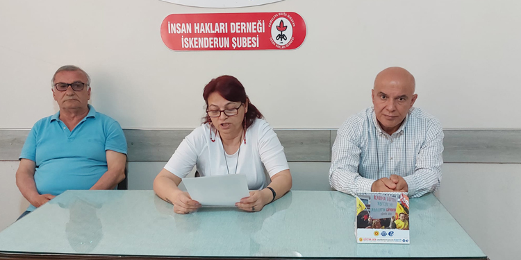 İnsan Hakları Derneği (İHD) İskenderun Şubesi, Gezi Parkı Davası’nda iş insanı Osman Kavala’nın da aralarında olduğu 17 sanıklı davada verilen cezalar ve tutuklamalara tepki gösterdi. İHD İskenderun Şubesi’nde yapılan açıklamaya Halkların Demokratik Partisi (HDP) Hatay İl Eşbaşkanı Hülya Ateş, HDP İskenderun İlçe Eşbaşkanı Abdurrahmin Şahin, HDP PM Üyesi Mahmut Aydıncı ile çok sayıda partili katıldı.