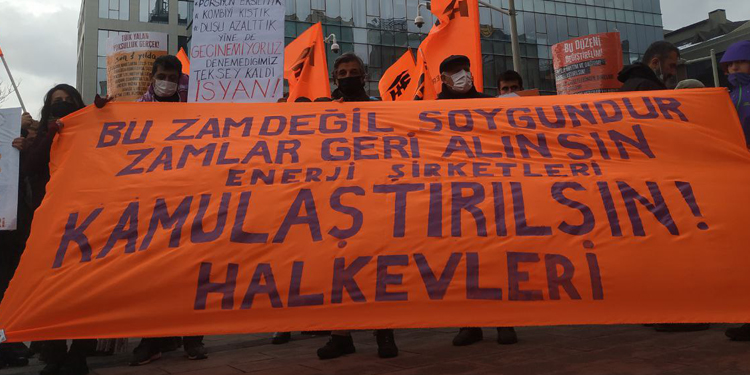 Elektrik faturalarına yapılan zamma karşı tepkiler sürüyor. İstanbul Çağlayan’da bulunan BEDAŞ önüne gelen Halkevleri üyeleri “GEÇİNEMİYORUZ! Bu zam değil soygundur! Zamlar geri alınsın. Enerji şirketleri kamulaştırılsın!” sloganıyla eylem gerçekleştirdi.