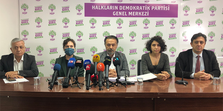 Halkların Demokratik Partisi (HDP) Hukuk Komisyonu, partilerine yönelik açılan kapatma davasına dair Anayasa Mahkemesi’nde (AYM) sundukları ön savunmaya ilişkin partinin genel merkezinde basın toplantısı düzenledi. HDP Hukuk ve İnsan Hakları Komisyonundan Sorumlu Eş Genel Başkan Yardımcısı Ümit Dede, Hukuk Komisyonu üyesi avukat Maviş Aydın, Parti Meclisi (PM) üyesi avukat Doğan Erbaş ile HDP’nin hukukçu milletvekillerinden Mehmet Rüştü Tiryaki toplantıya katıldı.