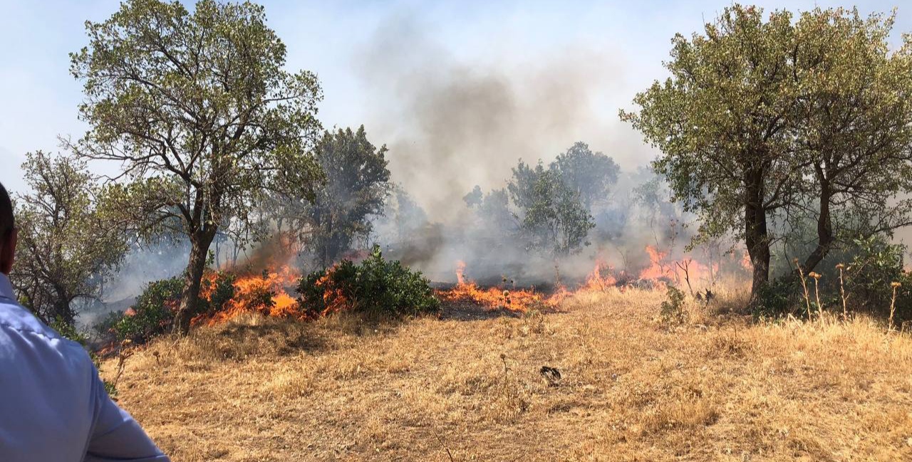 Hakkari’nin Şemdinli ilçesine bağlı Nêrkole köyünde bulunan ormanlık alanda önceki gün akşam saatlerinde yangın çıktı. Giderek etkisini artıran yangın kısa süreliğine dursa da halen devam ediyor. Halkların Demokratik Partisi (HDP) Şemdinli İlçe Örgütü ve Hakkari Milletvekili Sait Dede, yangının çıktığı bölgeye giderek incelemelerde bulundu.