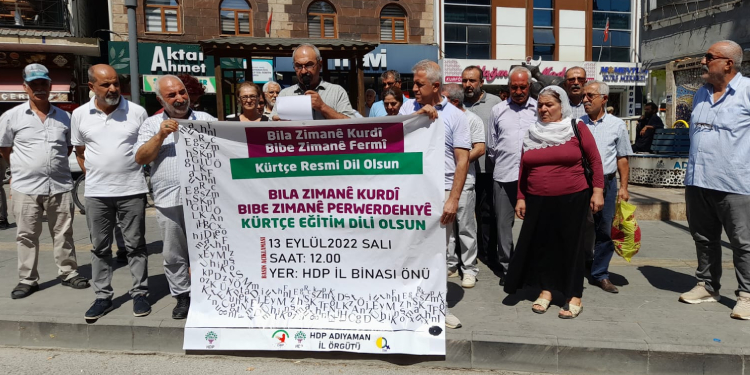 Halkların Demokratik Partisi (HDP) Adıyaman ve Antep il örgütleri, “Kürt dili üzerindeki asimilasyonu durdurun” ve “Asimilasyona karşı anadilinde eğitim” şiarıyla basın açıklaması yaptılar. Adıyaman merkezde bulunan Gölbaşı Caddesi üzerinde yer alan HDP İl Örgütü binası önünde yapılan açıklamaya Yeşiller Sol Partisi İl Örgütü temsilcileri ve demokratik kitle örgütü temsilcileri destek verdi. “Bila zimanê Kurdî bibe zimanê fermî (Kürtçe resmi dil olsun)” pankartının açıldığı açıklamada konuşan HDP merkez ilçe Yönetim Kurulu Üyesi Mehmet Bayır, “Anadilde eğitim verilmesi için biz Anayasa’da bulunan 42’nci maddenin değiştirilmesini istiyoruz. Türkiye’nin de taraf olduğu uluslararası anlaşmalarda anadilde eğitim hakkı koruma altına alınmıştır. Türkiye taraf olduğu anlaşmaların gereğini yerine getirerek ilkokuldan üniversitelere kadar anadilde eğitimin önünü açmalı. Biz dillere dönük özellikle de Kürtçeye dönük yasaklamaları kabul etmiyoruz. Kürtçenin yasaklanması Kürt çocuklarına karşı işlenen bir insanlık suçudur” diye konuştu.
