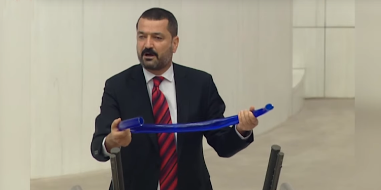 “Bilmecenin cevabı hortum. Bu hortum AKP’nin ustalık döneminin, AKP iktidarının ve onun genel başkanını Tayyip Erdoğan’ın ustalık döneminin hortumu. Peki bu hortum neye yarıyor arkadaşlar? Bu hortumun bir ucu merkez bankasının kasasına vana ile bağlı ve bu hortumun diğer ucu saraydan gelen talimatla açılıyor ve merkez bankasından bu hortumdan dolara akıyor dolar. Dolar aktıkça bu hortum doluyor, genleşiyor. Bu hortumdan tam 128 milyar dolar para akıtıldı. Şu ucunda kim var? Yürütmenin başı Tayyip Erdoğan, bu hortumlama işinde ustalaştı. Bu hortumdan 128 milyar dolar akıtıldı. Türk parasıyla eski parayla bin katrilyon, yeni parayla bin trilyon. Bu hortumdan 128 milyar dolar akıtıldı, bunun cevabı bekleniyor. Hortumcusunuz, hortumcu olduğunuzu kabul edin.”