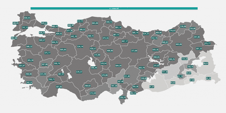 10-16 Nisan arasında illere göre her 100 bin kişide görülen Kovid-19 vaka sayılarını açıklandı.