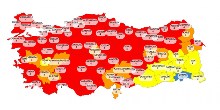 Sağlık Bakanı Fahrettin Koca, Türkiye koronavirüs risk haritasını paylaştı. Haritada, riskin yüksek olduğu kırmızı kategorisinin 58 ile yayıldığı görüldü.