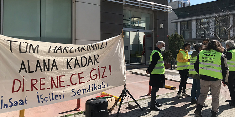 İnşaat İşçileri Sendikası, Mekatronik İnşaat'ın İstanbul'daki genel merkezi önünde direnişe geçti.