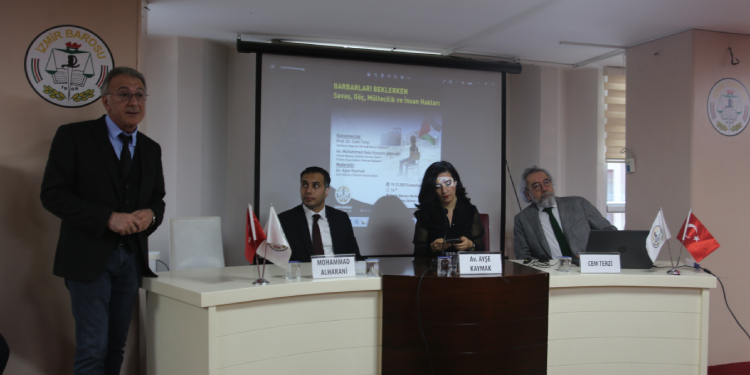 İzmir Barosu, 10 Aralık Dünya İnsan Hakları Günü dolayısıyla “Barbarları Beklerken: Savaş, Göç, Mültecilik ve İnsan Hakları” başlığıyla panel düzenledi. İzmir Barosu Konferans Salonunda gerçekleşen panele Halkların Köprüsü Derneği Başkanı Cem Terzi ve Filistin Barosu Yönetim Kurulu Üyesi Mohammed Rabı Hussein Alheranı konuşmacı olarak katıldı.