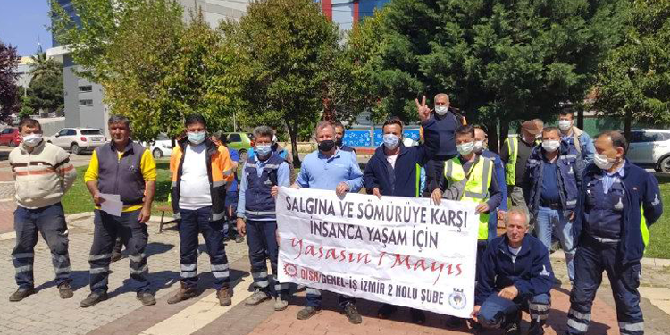 Gaziemir’de ise işçiler park bahçelere ait atölyede bir araya geldi. Burada konuşan iş yeri temsilcisi  Ekber Yalçın da hükümetin ekonomik bir model geliştirerek, zorunlu olmayan hizmet ve üretimin durdurulacağı 28 günlük tam kapanmayı talep etti. Asgari ücretin vergiden muaf tutulması, emeklilik, kıdem tazminatı, sosyal güvenlik ve sağlık haklarının gaspı yönündeki adımların durdurulmasını isteyen Yalçın, “Herkese iş, güvenceli gelecek, insanca çalışma koşulları için 1 Mayıs’ta alanlara” diyerek emekçilere çağrı yaptı.
