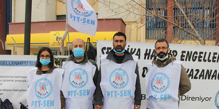 Posta, Telefon ve Telekomünikasyon (PTT) bünyesinde çalışan işçiler, temel haklarını alabilmek amacıyla Posta, Telefon ve Telekomünikasyon İşçileri Sendikası (PTT-Sen) ve Posta, Transfer Taşımacılık ve Kargo İşçileri Sendikası’nı (PTT KARGO-SEN) kurdu. Sendikanın kurulmasının ardından örgütlenmeyi engellemek için işçiler, tazminatları ödenmeden işten çıkarıldı. İşçiler, işe iade talebiyle İzmir Bayraklı’da bulunan PTT Merkez Müdürlüğü önünde başlattıkları eylemi 25 gündür sürdürüyor.