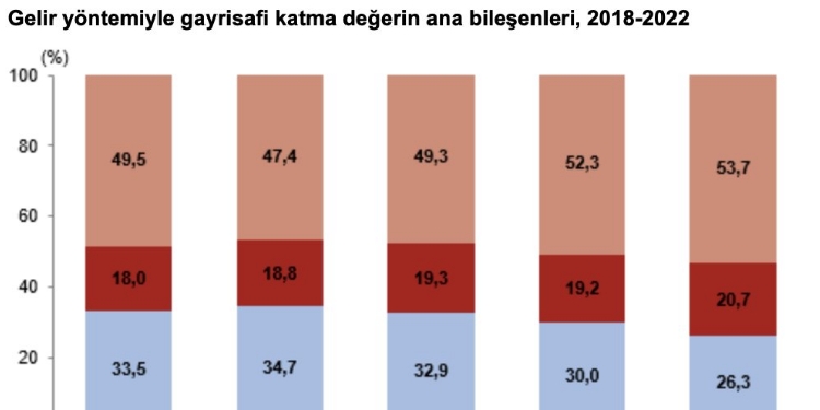 Türkiye İstatistik Kurumu (TÜİK), 2022 ve 2023 yılı II. çeyrek Gayrisafi Yurt İçi Hasıla verilerini açıkladı. Bu verilere göre, işgücüne yapılan ödemelerin payı 2018 yılında %33,5 iken, 2022 yılında %26,3’e geriledi. Bu durum, son 5 yılda işgücü ödemeleri payının 7,2 puan düşmesine neden oldu.