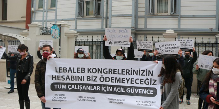 Kafe ve Bar Çalışanları Dayanışması, Turizm İşçileri Dayanışması, Otel ve Turizm İşçileri Sendikası ve Kent Emekçileri Dayanışması, salgın kararlarına tepki göstermek amacıyla İstanbul’un Kadıköy ilçesinde bulunan Süreyya Operası önünde bir araya gelerek basın açıklaması gerçekleştirdi. Açıklamada, “Lebaleb kongrelerinizin hesabını biz ödemeyeceğiz. Tüm çalışanlar için acil güvence” pankartı ve “Patrona kar değil, emekçiye güvence”, “Hayatta kalmak değil yaşamak istiyoruz” dövizleri taşınırken sık sık, “İnsanca yaşamak istiyoruz” ve “Ölmek de, batmak da istemiyoruz” sloganları atıldı.