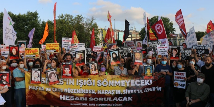 İstanbul Emek, Barış ve Demokrasi Güçleri, 2 Temmuz 1993’de Madımak Otel’de 35 kişinin yakılarak katledildiği Sivas Katliamı’na ilişkin Kadıköy Rıhtım’da basın açıklaması gerçekleştirdi. Halkların Demokratik Partisi (HDP) İstanbul Milletvekili Musa Piroğlu’nda katıldığı açıklamada, “Sivas’ın ışığı sönmeyecek! Mafya ve çete düzeninden, Maraş’ın, Sivas’ın, İzmir’in hesabı sorulacak” pankartı açıldı. Açıklamada, “Gün gelecek devran dönecek katiller halka hesap verecek”, “ Sivas şehitleri yaşıyor”, “ Sivas’ın faili Deniz’in katili” sloganları atıldı.