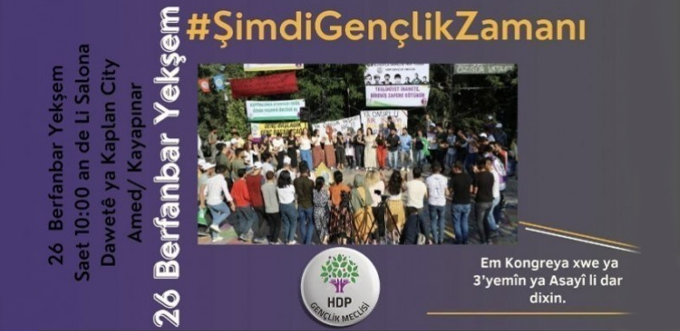 Halkların Demokratik Partisi (HDP) Gençlik Meclisi, “Şimdi gençlik zamanı” şiarıyla 26 Aralık’ta 3’üncü Olağan Kongresi’ni gerçekleştirecek. İstanbul’dan Van’a kongreye hazırlık çalışmalarını sürdüren gençler, 26 Aralık’ta Diyarbakır Kayapınar’da bulunan Kaplan City Salonu’nda buluşacak.