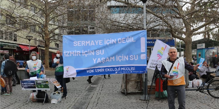 Halkların Demokratik Kongresi (HDK) İzmir Ekoloji Meclisi, 24 Şubat’ta başlattığı “Sermaye için değil İzmir için su” kampanyasının çalışmalarını sürdürüyor. HDK’liler yaklaşık 1 buçuk aydır kentin çeşitli bölgelerinde açtıkları stantlar ile İzmir’in yaşadığı su sorununa dair yurttaşları bilgilendiriyor. Ayrıca Menemen ilçesinde yapılması planlanan fakat bölgedeki altın madeni nedeniyle yapılamayan Çamlı Barajı’nda hayata geçmesi için imza toplanıyor.