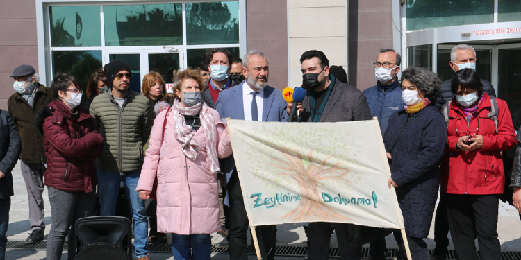 Kurumlar adına basın açıklamasını yapan İzmir Barosu Başkanı Özkan Yücel, iktidarın Anayasa’ya, kanunlara ve uluslararası sözleşmelere aykırı biçimde, zeytin alanlarını madencilik faaliyetlerine açmak istediğini söyledi. Yücel, bu degikligin hemen ardından “Nitelikli Doğal Koruma Alanları”nda faaliyetlere izin veren bir yönetmelik değişikliği daha yapıldığını belirterek, Siyasi iktidarın, yasa değişikliğine dahi gerek görmeden, Meclisi ve toplumu devre dışı ettiğini aktardı. Yücel, “İktidara şirketlerin sermaye birikimini artırmak ve daha fazla kar elde etmelerini sağlamak için yaşam alanlarını, doğal alanları talana açmaya devam ediyor. Bu doyumsuz yok etme hırsına, doğayı yağmalama merakına ilişkin hikayeyi hepimiz biliyoruz. Yağmacılar, talancılar ve rantçılar tarih sahnesinden silinirken, Ölmez Ağacı’nın öyküsünün hiç bitmediğinin de farkındayız” dedi.