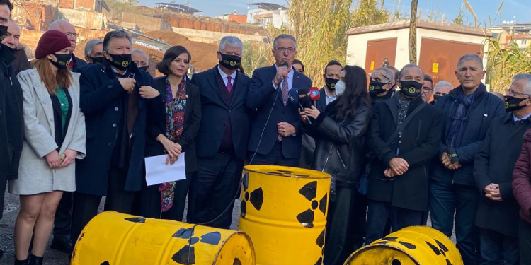 İzmir’in Çernobili Temizlensin Platformu, Gaziemir ilçesinde bulunan eski kurşun fabrikası arsasında gömülü bulunan nükleer atıklara ilişkin fabrika önünde basın açıklaması yaptı. Çok sayıda kişinin katıldığı açıklamaya, Gaziemir Belediye Başkanı Halil Arda destek verdi.