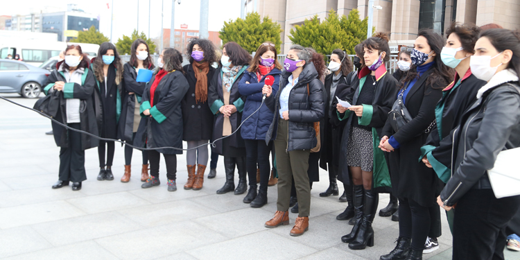 İstanbul Sözleşmesi’nden çekilme kararına tepkiler devam ediyor. İstanbul Kadın Avukat Dayanışması da, Cumhurbaşkanlığı Kararnamesi’ni yaptığı açıklamayla protesto etti. Çağlayan’da bulunan İstanbul Adliyesi önünde gerçekleştirilen açıklamaya, çok sayıda kadın hukukçu katıldı. Sık sık “Yaşasın kadın dayanışması” ve “Sözleşmeyi uygula kararı geri çek” sloganlarının atıldığı açıklamayı Avukat Ekin Baltaş yaptı.