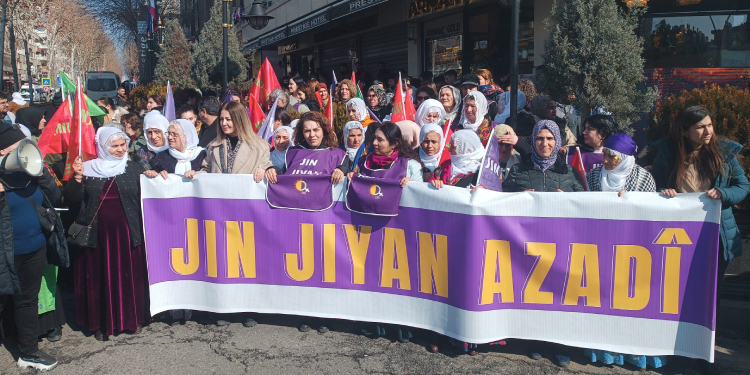 Demokratik Bölgeler Partisi (DBP) ve Halkların Eşitlik ve Demokrasi Partisi (DEM Parti) öncülüğünde Amed’in Yenişehir ilçesinde bulunan İstasyon Meydanı’nda “Barış için özgürlük” şiarıyla miting gerçekleştiriyor. Kadınlar, Özgür Kadın Hareketi (TJA) öncülüğünde kortej halinde miting alanına yürüyüş gerçekleştiriyor.