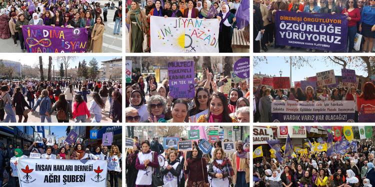 Kadınlar, 8 Mart Dünya Kadınlar Günü dolayısıyla alanlarda. Elazığ (Xarpêt), Hakkari (Colemêrg), Antep (Dîlok), Van (Wan), Urfa (Riha), Konya gibi birçok kentte bir araya gelen kadınlar şölen düzenledi.