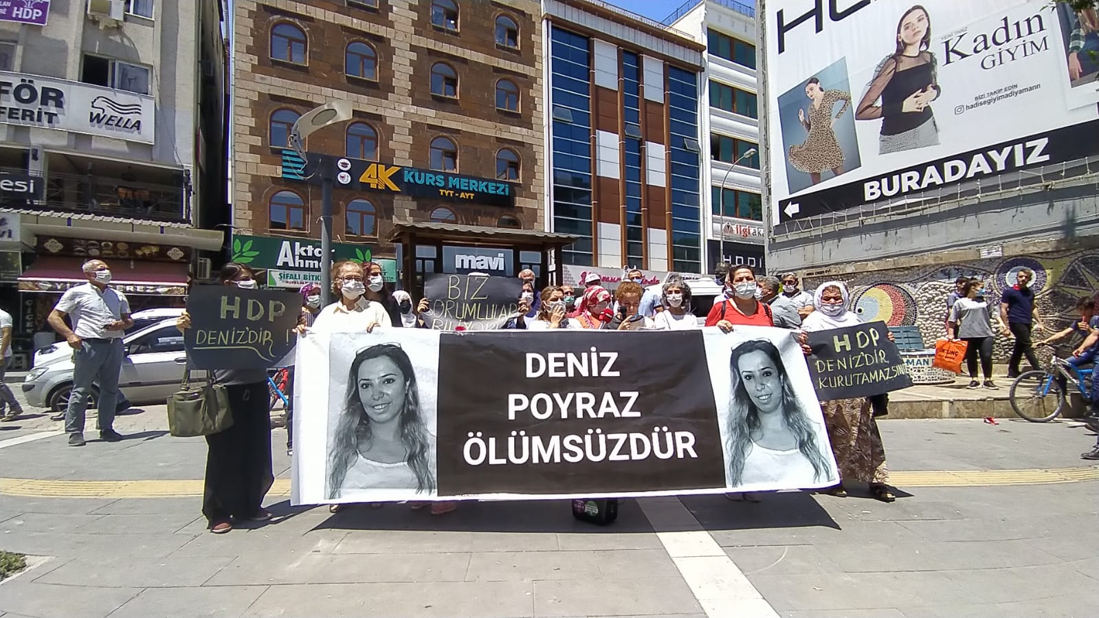 Halkların Demokratik Partisi (HDP) Adıyaman Kadın Meclisi üyeleri, 17 Haziran’da İzmir’deki parti binasına yapılan saldırı ve Deniz Poyraz’ın katledilmesini protesto etti. Parti binası önünde yapılan açıklamaya Barış Anneleri İnisiyatifi üyeleri ve çok sayıda demokratik kitle örgütü temsilcisi de katıldı. Açıklamada, Deniz Poyraz’ın fotoğrafının yer aldığı “Deniz Poyraz ölümsüzdür” pankartı ile “HDP Deniz’dir, kurutamazsınız” ve “HDP Deniz’dir” dövizleri taşındı.