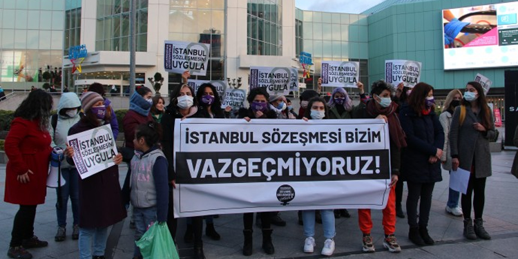 İstanbul Sözleşmesini Uygula Kampanya Grubu, “İstanbul sözleşmesi bizim, vazgeçmiyoruz” demek için Mecidiyeköy’de bulunan Cevahir AVM önünde bir araya gelerek basın açıklaması gerçekleştirdi. “İstanbul sözleşmesi bizim vazgeçmiyoruz” pankartı açılan açıklamada, “İstanbul sözleşmesini uygula” dövizleri taşınırken sık sık “Jin jiyan azadi” sloganları atıldı.
