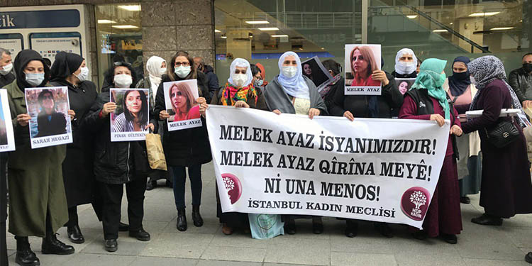 Tevgera Jinên Azad (TJA), Halkların Demokratik Kongresi (HDK) ve Halkların Demokratik Partisi (HDP) İl Kadın Meclisleri, İstanbul Silivri’de 18 Ocak günü evli olduğu Süleyman Güngörmüş tarafından katledilen Melek Ayaz için basın açıklaması gerçekleştirdi. Şirinevler Yürüyüş yolunda yapılan açıklamada Kürtçe ve Türkçe “Melek Ayaz isyanımızdır” pankartı açıldı. Kadınlar ayrıca erkek-devlet şiddeti sonucu yaşamını yitiren kadınların fotoğraflarını da taşıdı.