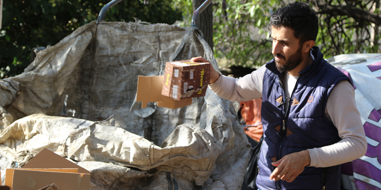 Van depreminden sonra Ankara’ya yerleştiklerini söyleyen 45 yaşındaki Arafat Akın, 7 çocuğu olduğunu, geçimini katı atıklardan sağladığını belirtti. Pandemi yasakları boyunca çalışamadığını ifade eden Akın, “Pandemi döneminde dışarı çıktığımızda polis ceza yazıyordu, çok zorlandım o dönem, 3 bin lira su parası birikmiş. Çocuklarımın ihtiyacını karşılayamıyorum, pantolon ve ayakkabı istese sadece birini alabilecek gücüm var. Başka yapacak iş yok, olsa yapardım. Çalışmazsak yiyecek ekmek yok. Belediye defalarca mallarımızı götürdü, büyük zarara uğradık” şeklinde konuştu.