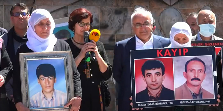 Diyarbakır ve Batman’da İnsan Hakları Derneği (İHD) ile kayıp yakınları tarafından düzenlenen “Kayıplar bulunsun failler yargılansın” eyleminde kayıpların akıbeti soruldu. Diyarbakır merkez Bağlar ilçesi Koşuyolu Parkı İnsan Hakları Anıtı önünde 687’si gerçekleşen eyleme kayıp yakınları, İHD Eş Genel Başkanı Öztürk Türkdoğan, Diyarbakır Tabip Odası Başkanı Elif Turan, Sağlık ve Sosyal Hizmet Emekçileri Sendikası (SES) Diyarbakır Şube yöneticileri de katıldı. “Kayıplar bulunsun, failler yargılansın” açıldığı eylemde, İHD Eş Genel Başkanı Öztürk Türkdoğan konuştu.