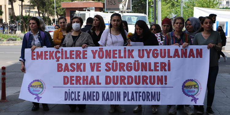 Dicle Amed Kadın Platformu (DAKAP), Diyarbakır Büyük Şehir Belediyesi (DBB) kayyımı ve yöneticileri tarafından mobinge maruz bırakılan Tüm Belediye ve Yerel Yönetim Hizmetleri Emekçileri Sendikası (TÜM BEL-SEN) üyesi kadınlar için belediye önünde açıklama yaptı. “Emekçilere yönelik uygulanan baskı ve sürgünleri derhal durdurun” pankartının açıldığı açıklamaya, Tevgera Jinên Azad (TJA), Rosa Kadın Derneği, Halkların Demokratik Partisi (HDP), Demokratik Bölgeler Partisi (DBP), Kamu Emekçileri Sendikaları Konfederasyonu (KESK), Özgürlük için Hukukçular Derneği (ÖHD) ve kentte bulunan kadın örgütleri temsilcileri katıldı. Açıklamayı kurumlar adına Tarım Orkam-Sen Genel Merkezi Kadın Sekreteri Serap Baysal okudu.