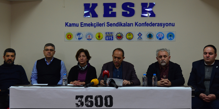 Kamu Emekçileri Sendikası Konfederasyonu (KESK), milyonlarca kamu emekçisi ve emeklilerin ek göstergede yaşadığı adaletsizliğine ilişkin düzenlediği basın toplantısı düzenledi. Konuya ilişkin hazırlanan raporu kamuoyuyla paylaşan KESK EşBaşkanı Mehmet Bozgeyik, iktidarın 3600 ek gösterge konusunda algı yarattığını, seçimler için malzeme konusu yaptığını söyledi. Bozgeyik, “Hiç kimsenin milyonlarca insanımızı etkileyen bu denli önemli bir konuyu geçiştirmeye, talepleri görmezden gelmeye hakkı yoktur, olamaz. 3600 konusu şimdi de Çalışma Bakanlığı ve Memur Sen arasında kapalı kapılar ardında yapılan görüşmelerle sürüyor. Şimdiye kadar yapılan toplantılarda neler konuşuldu kendileri dışında kimse bilmiyor” dedi.