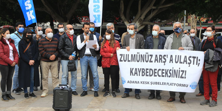 KESK Adana Şubeler Platformu’nun İnönü Parkı’nda çok sayıda kişinin katıldığı açıklamada, “Zulmünüz Arş’a ulaştı; kaybedeceksiniz” yazılı pankart açıldı. Burada açıklama yapan KESK Şubeler Platformu Dönem Sözcüsü Ahmet Aydoğan, darbe girişimi sonrası ilan edilen Olağanüstü Hal (OHAL) ve devamında çıkarılan KHK’lerle 125 bin 678 kamu görevlisinin ihraç edildiğini belirtti.