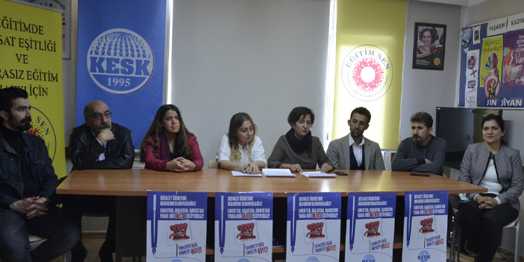 Kamu Emekçileri Sendikaları Konfederasyonu (KESK), 2022 bütçesine ilişkin “Geçinemiyoruz, insanca yaşam, emekten ve halktan yana bütçe için omuz omuza” şiarıyla 18 Aralık’ta Diyarbakır ve İzmir’de, 19 Aralık’ta ise İstanbul ve Ankara’da miting düzenleyecek. Mitinge ilişkin açıklama yapan KESK Adana Şubeler Platformu, katılım çağrısında bulundu. Eğitim Sen Adana Şubesi’nde yapılan açıklamaya KESK Genel Merkez Kadın Sekreteri Döne Gevher ve Tüm Bel Sen MYK üyesi Zeynep Sarıkaya Altun’un yanı sıra birçok kişi katıldı.