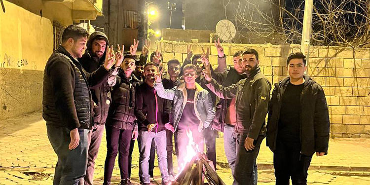 Mardin’in Kızıltepe İlçesi Yeni Mahallede bir araya gelen bor grup genç Newroz ateşi yaktı. Yaktıkları ateşin etrafında zafer işaretleri yapan gençler, 19 Mart günü Kızıltepe’de düzenlenecek olan Newroz kutlamasına çağrıda bulundu.