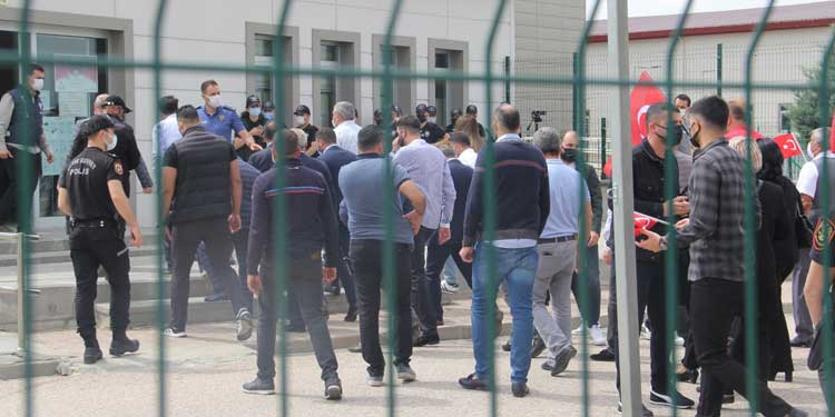 Duruşma salonun önünde slogan atan grup, HDP’li vekillerine saldırmak istedi. Şırnak Milletvekili Hüseyin Kaçmaz bu durum üzerine bir polis amiri ile görüşmek istedi.