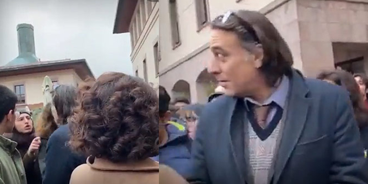 Öğrencilerin toplandığı alana giden Koç Üniversitesi Öğrenci Dekanı Baha Yiğit Sayın ile öğrenciler arasında bir süre sonra tartışma başladı.