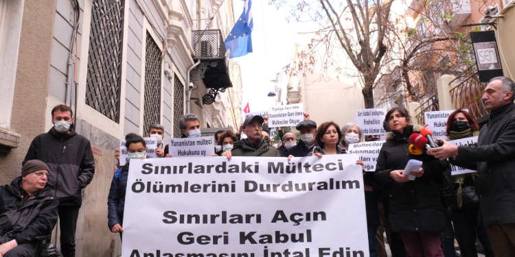 Demokratik kitle örgütleri (DKÖ), Edirne’de donarak yaşamını yitiren mülteciler için Beyoğlu’nda bulunan Yunanistan Konsolosluğu önünde açıklama gerçekleştirdi. Açıklamaya, Halkların Demokratik Kongresi (HDK) Eş Sözcüsü Cengiz Çiçek, Halkların Demokratik Partisi (HDP) İstanbul milletvekilleri Musa Piroğlu, Zeynel Özen, Züleyha Gülüm, İnsan Hakları Derneği (İHD) Eş Genel Başkanı Eren Keskin de katıldı. Açıklamada “Sınırlardaki mülteci ölümlerini durdurun sınırları açın, Geri Kabul Anlaşmasını iptal edin” pankartı açılırken, “Türkiye ileri itme, Yunanistan geri itme, mülteciler ölüyor”, “Mülteci hakları insan haklarıdır”, “Yunanistan mülteci hukukuna uy mültecileri geri itme” dövizleri taşındı.
