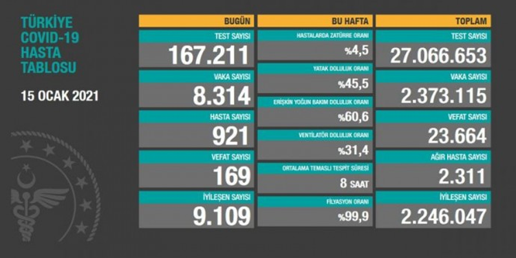Öte yandan paylaşılan 15 Ocak tablosundaki verilerin eksik olduğu görüldü. Dünkü tabloda yer alan toplam vefat sayısı 23 bin 495 iken bugün vefat eden 174 kişi olmasına rağmen sayı 22 bin 981 olarak verildi. Yine aynı şekilde vaka sayısı da eklenmeden tabloda yer aldı.
