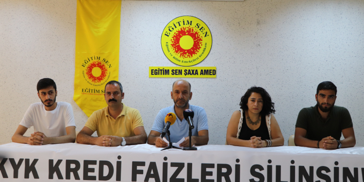 Eğitim ve Bilim Emekçileri Sendikası (Eğitim-Sen) Diyarbakır 1 No’lu Şubesi, Kredi Yurtlar Kurumu (KYK) burslarına getirilen yüksek faizlere ilişkin, şube binasında toplantı düzenledi. “KYK kredi faizleri silinsin! Öğrencilere kredi değil burs verilsin” pankartının asıldığı salonda açıklama yapan Diyarbakır Eğitim-Sen 1 Nolu Şube Yöneticisi Şeyhmus Tekin, öğrencilerin aldıkları burslara üç kat faiz getirilmesinin kabul edilemez olduğunu söyledi.