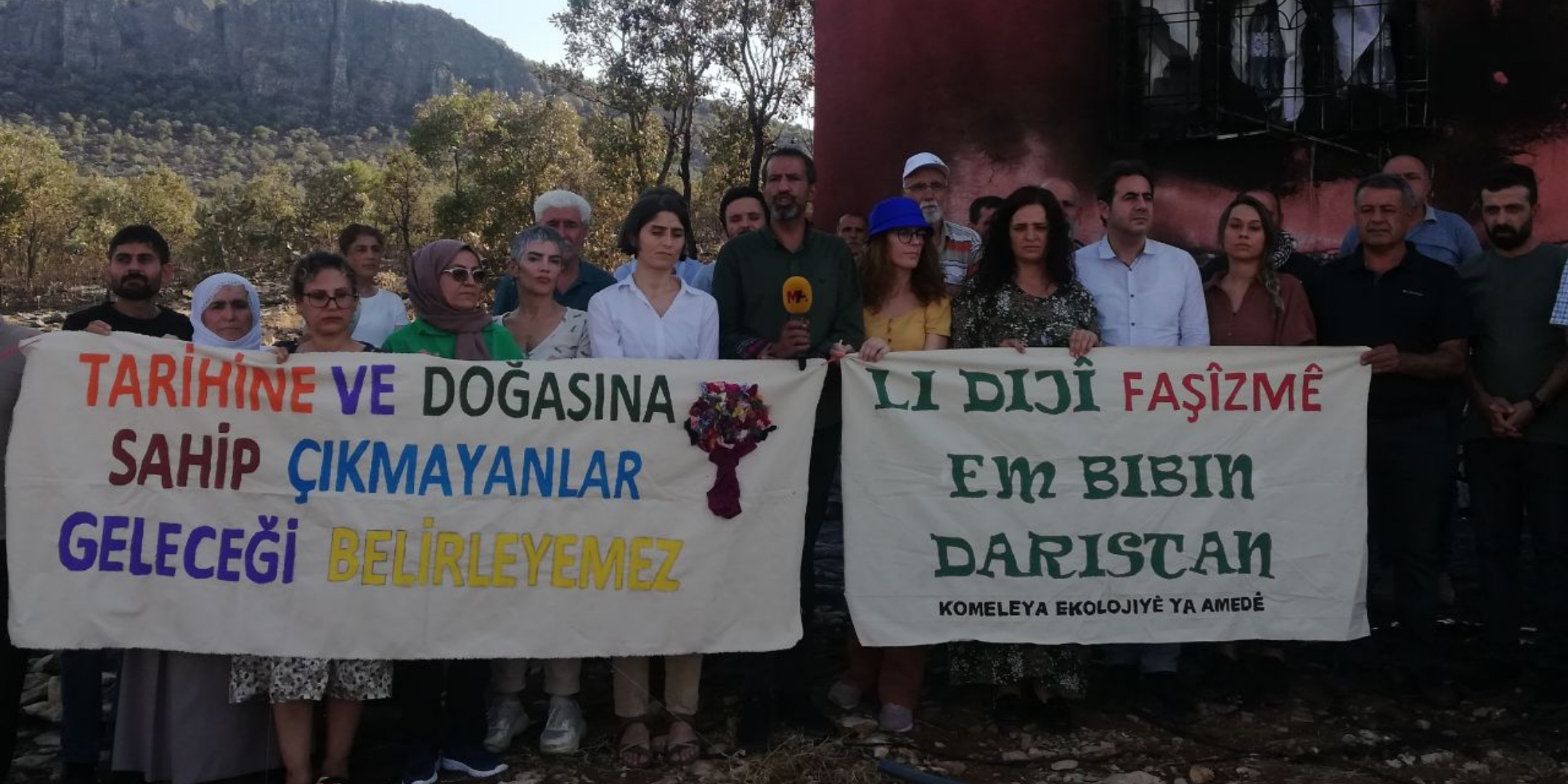 Yeşil Sol Parti Amed Milletvekili Ceylan Cupalo Akça da bölgece bir ay içinde 3 kez yangın çıktığını ifade ederek, “İlk iki yangının failleri belliydi, bu yangının failleri henüz yok. Ancak bunun da şaibeli olduğu, yine küresel ısınmaya, ekolojik değişime suçu atamayacakları bariz bir gerçeklik. Bugün Cudi’de Gabar’da yangınların çıkarıldığını ve söndürülmek isteyen halka müdahale edildiğini görüyoruz. Yine Lice’nin köylerinde ağaç ve doğa katliamının yapıldığını görüyoruz. Bu yangın da bütün bunlardan bağımsız görülemez, düşünülemez. Biz ‘Kayyımlar siyasi bir karardır’ diyorduk. Bu yangınlar da politiktir. Bu yangınlara müdahale biçimleri de politiktir. İklim krizi de politiktir. Ve küresel ısınmaya karşı alınmayan önlemler de politiktir. Bütün bu siyasi saldırgan düşmanca tutuma karşı biz de Kürt halkı, Yeşil Sol Parti olarak kendi örgütlenmemizi kendi öz savunmamızı, öz müdahale biçimlerimizi de geliştireceğiz. Buradaki halkın yanında olacağız. Kendi öz gücümüzle kendi kendimize sahip çıkacağız” diye konuştu.