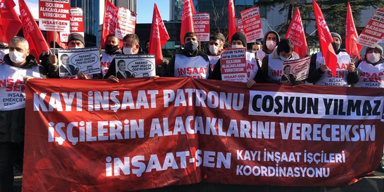 İnşaat Emekçileri Sendikası’na (İnşaat Sen) bağlı Kayı İnşaat İşçileri Koordinasyonu, paralarını almak için işveren Coşkun Yılmaz’ın ofisinin bulunduğu Levent’teki Kayı İnşaat Genel Merkezi önünde başlattıkları eylemin 4’üncü gününde açıklama yaptı. Çok sayıda işçinin katıldığı açıklamada, “Kayı İnşaat patronu Coşkun Yılmaz işçilerin alacaklarını vereceksin” pankartı ve “ Coşkun Yılmaz artık oyalama, işçilerin parasını vereceksin” dövizleri açıldı.