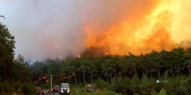 Manavgat’ta 4 gün önce başlayan orman yangını birçok mahallede etkisini sürdürüyor. Yangının etkili olduğu yerlerden Gebece Mahallesi ve yangını ensesinde hisseden Ahmetler Mahallesi’nde bulunan evler boşaltıldı. Gebece Mahallesi Güğlendibi Beloluk mevkiinde yangına müdahalede bulunan arazöz alevler arasında kaldı.