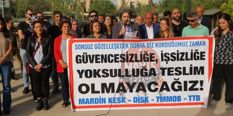 Mardin’de gerçekleştirilecek 1 Mayıs kutlaması için Tertip Komitesi tarafından açıklama yapıldı. Karayolları Parkı’nda yapılan açıklamaya çok sayıda kişi katıldı. Pankart ve dövizlerin taşındığı açıklamada metni Tertip Komitesi adına Mardin Tabip Odası Başkanı Mustafa Volkan Binbaş okudu.