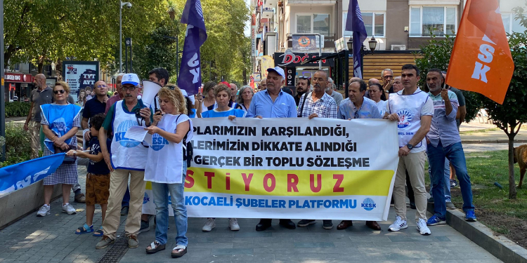 Kamu Emekçileri Sendikaları Konfederasyonu (KESK), İzmit İlçesi’nde bulunan İnsan Hakları Parkı’nda Memur Sendikaları Konfedarasyonu (Memur-Sen) ile hükümet arasında sürdürülen Toplu İş Sözleşmesi (TİS) sürecine ve açıklanan mutabakata ilişkin basın açıklaması gerçekleştirdi. “Kayıplarımızın karşılandığı, taleplerimizin dikkate alındığı, grevli bir toplu sözleşme istiyoruz” pankartının açıldığı açıklamada sık sık, “Rakamlar yalan yoksulluk gerçek” ve “İnsanca yaşam istiyoruz” sloganları atıldı. Açıklamaya çok sayıda sendika, parti ve dernek yönetimi ile üyesi katıldı.