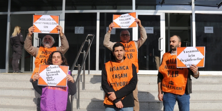 Mersin Halkevleri, asgari ücret tespit komisyonu görüşmelerinin başlamasına dair Sosyal Güvenlik Kurumu (SGK) Mersin İl Müdürlüğü önünde açıklama yaptı. “Asgari ücretin insanca yaşayacak düzeye çekilmesi” talebiyle yapılan açıklamada, “Yoksulluğa, hayat pahalılığına son”, “Emekliler hakkını istiyor” dövizleri taşındı. Açıklamada basın metnini Halkevleri Genel Yürütme Kurulu (GYK) üyesi Ali Deniz Karahan okudu.