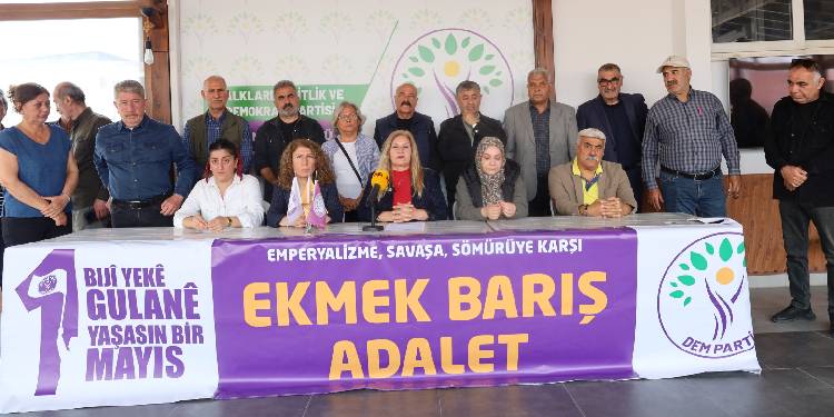 Halkların Eşitlik ve Demokrasi Partisi (DEM Parti) Mersin İl Örgütü, kentte 1 Mayıs İşçi Bayramı dolayısıyla Cumhuriyet Meydanı’nda düzenlenecek mitinge ilişkin parti binasında basın toplantısı düzenledi. Mersin Demokratik Kurumlar Platformu bileşenlerinin katıldığı toplantıda, “Emperyalizme, savaşa, sömürüye karşı ekmek, barış, adalet” pankartı asıldı. Açıklamayı okuyan İl Eşbaşkanı Bedriye Kuş, emperyalist saldırganlığın arttığı, ekonomik, ekolojik ve siyasal krizlerin derinleştiği bir dönemde 1 Mayıs’ı karşıladıklarını söyledi.