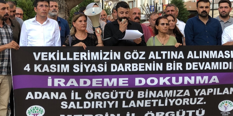 Halkların Demokratik Partisi (HDP) ile Yeşiller ve Sol Gelecek Partisi (Yeşil Sol Parti) Mersin İl Örgütü, cezaevinde yaşamını yitiren hasta tutuklu Bazo Yılmaz anmasına katılan milletvekilleri Ömer Öcalan’a ve parti binalarına yönelik saldırıya ilişkin açıklama yaptı.