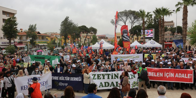 Muğla Milas ilçesinde Milas Kent Konseyinin çağrısıyla bir araya gelen ekolojistler “Zeytin hayattır, dokunma” mitingi düzenledi. Milas ilçesinde merkezindeki Atapark Meydanı’nda bir araya gelen kitle, ilçe merkezinde bir yürüyüş düzenlenikten sonra tekrar Atapark’a döndü. “Kömürsüz Muğla için”, “Zeytin, umut, yaşam, emek, sevgi ve barış demektir”, “Zeytin mirasımızdır”, “Akbelen için adalet” ve “Zeytin tane tane damla damla sağlıktır” pankartlarının taşındığı yürüyüş boyunca sık sık “Zeytinime dokunma huzurumu kaçırma”, “Madenlere inat yaşasın hayat” ve “Su, hava, toprak temel haktır hak” sloganları atıldı. Mitinge Milaslı zeytin üreticileri, Akbelen Ormanı için mücadele eden İkizköylülerin yanı sıra Muğla’nın ilçeleri, İzmir, Denizli ve Aydın’dan yüzlerce yurttaş katıldı. Mitinge katılan yüzler, maden, termik santral ve taş ocaklarına karşı zeytini koruyacaklarını haykırdı.