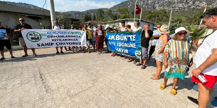 Menteşe Kent Konseyi, Muğla’da kıyıların özel işletmeler tarafından işgal edilmesine ilişkin Akbük Koyu’nda açıklama yaptı. “Akbük’te kıyı işgaline hayır”, “Denizden karaya, ormanlarımıza, kıyılarımıza sahip çıkıyoruz” pankartları açılan açıklamada, “Kıyılar halkındır halkın kalacak” sloganı atıldı. Çok sayıda yurttaşın katıldığı açıklama öncesi plaj içerisinde sloganlarla yürüyen grup, plajların ücretsiz olması çağrısında bulundu.