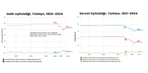 Dahası, emeği koruyan yasal düzenlemelerden giderek vazgeçilmesi sonucunda, aralarında Türkiye’nin de bulunduğu birçok ülkede gelir dağılımı adaletsizliği daha da arttı. Nitekim gelir dağılımı eşitsizliği ölçütlerinden olan Gini katsayısı (0’a yakın olması eşitliği, 1’e yakın olması eşitsizliği ifade eder), TÜİK tarafından 0,410 olarak tahmin ediliyor (9). En zengin yüzde 20’lik kesimin toplam gelirin yarısına yakınını elde ettiği Türkiye’de gelir eşitsizliği yüksek seyrini korumaya devam ediyor. Aşağıdaki grafiklerde ise ülkedeki gelir ve servet dağılımı adaletsizliğinin nasıl giderek arttığı görülüyor.