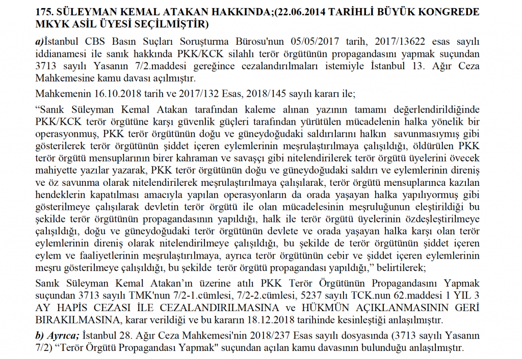 HDP hakkında kapatma davası açan Yargıtay Savcısı Bekir Şahin'in beş yıllık siyaset yasağı istediği isimlerden biri de sitemizin imtiyaz sahibi Mustafa Suphi Vakfı Başkanı S. Kemal Atakan.